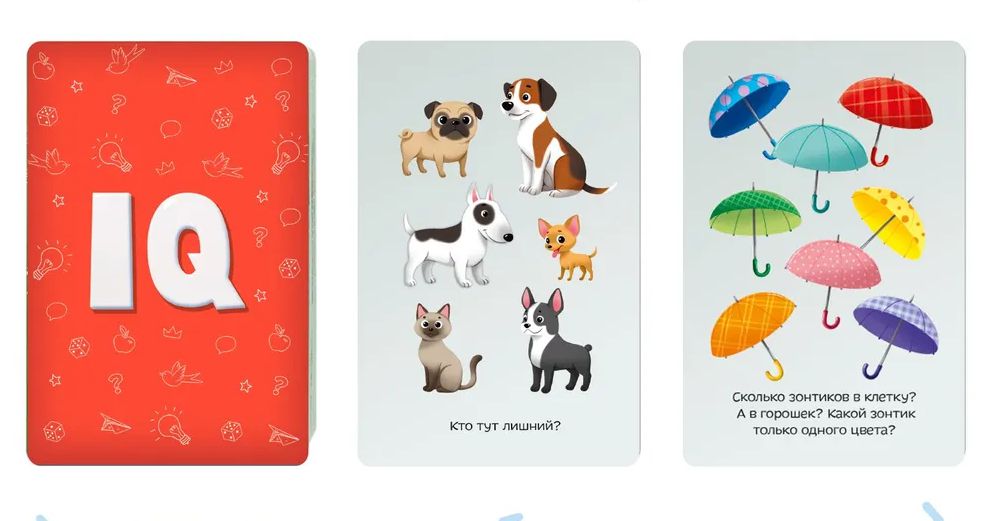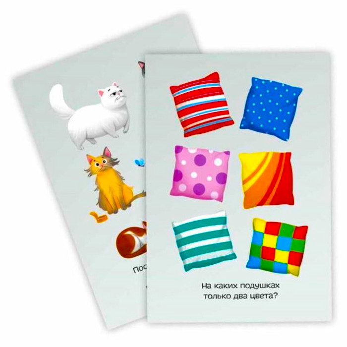 40 kartiņas ar aizraujošiem uzdevumiem (attīsta domāšanu, salīdzināšanas prasmes, loģiku, motoriku).