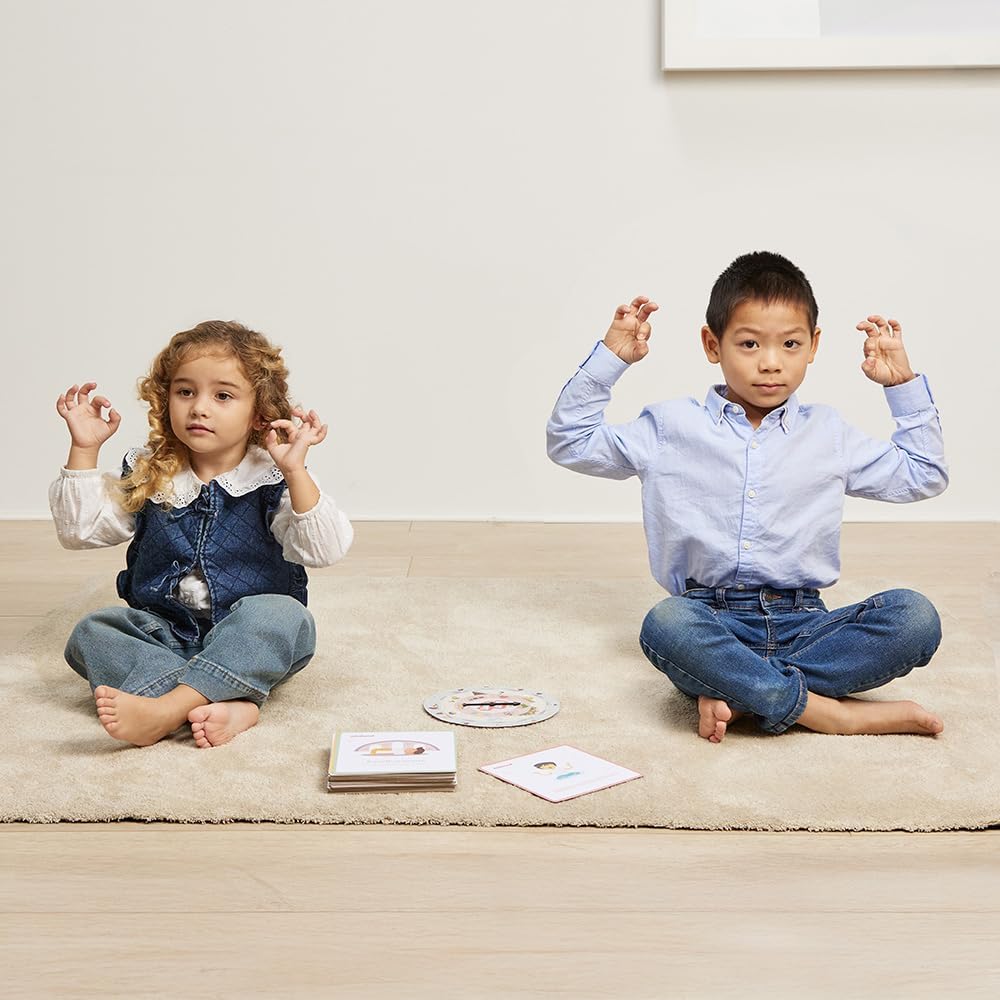 Komplektā: 24 lielas kartītes (15 x 15 cm) ar ilustrācijām un griežams rats, kas parāda kāda aktivitāte ir gaidāma (elpošana, stiepšanās, jogas poza).