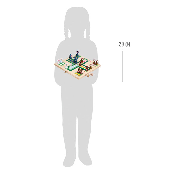 Moo and baa! Four different wooden farm animals run race around in this game. They're all trying to be the first to reach their house with the help of the dice. By playing the game, children can playfully learn their numbers while simultaneously training their motor skills. Playtime fun is pre-programmed here!