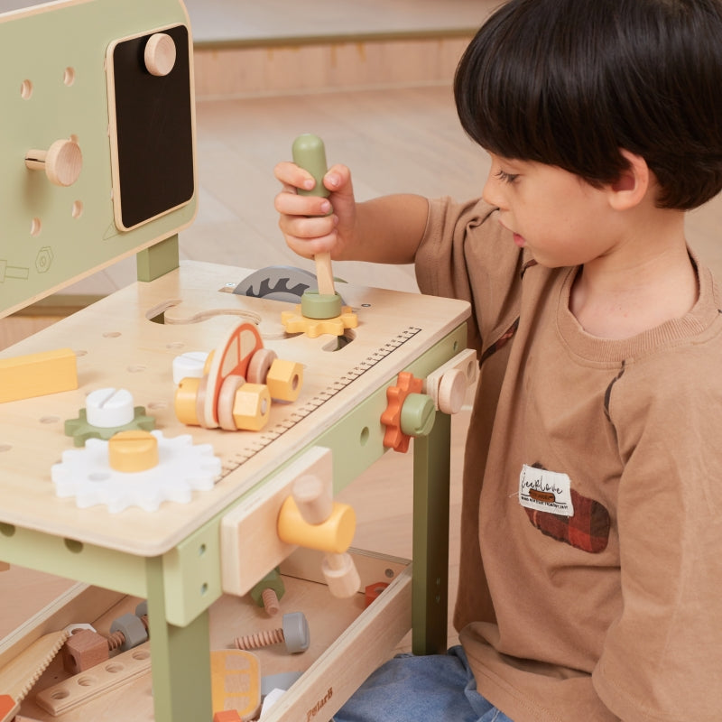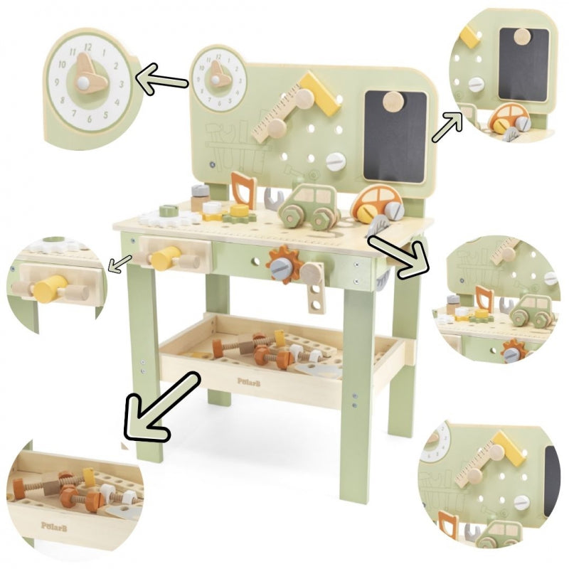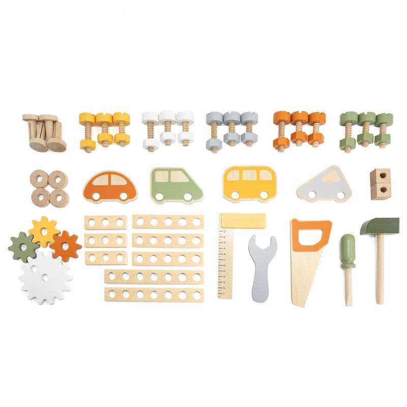 Izglītojoša un radoša rotaļlieta, kas attīsta sīko motoriku, loģisko domāšanu un roku veiklību. Komplektā ietilpst dažādi instrumenti un detaļas, lai bērni varētu spēlēties meistaru lomā. Ideāli piemērots rotaļām mājās vai bērnudārzā.