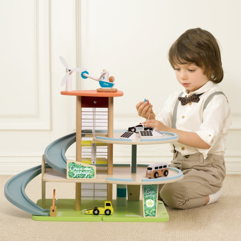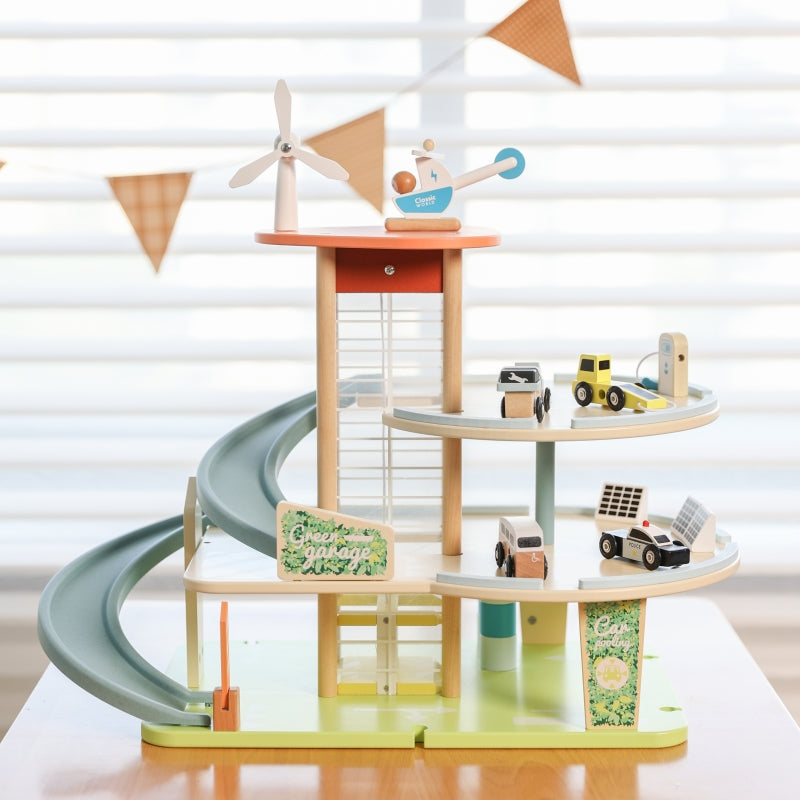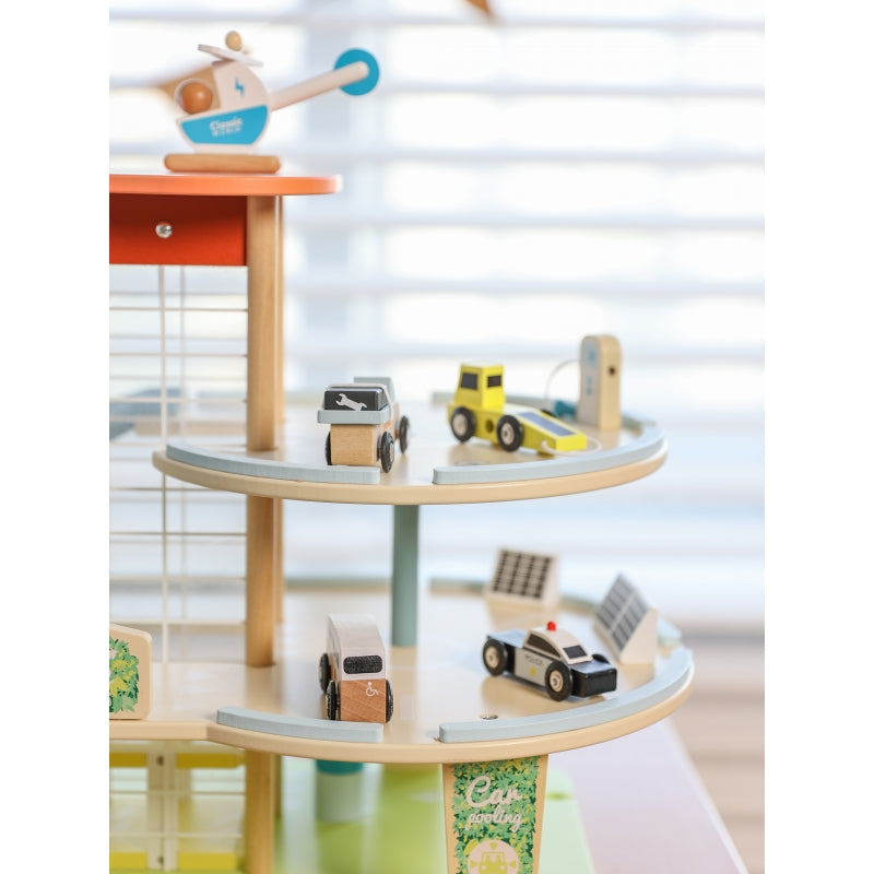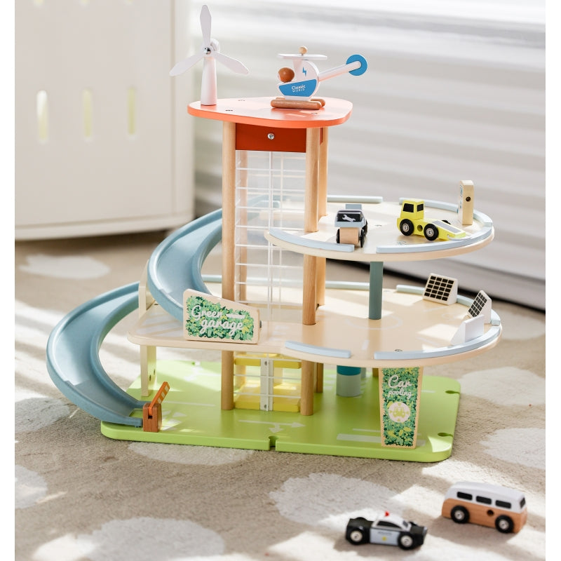 Trīs līmeņu garāža. Pārvietoties starp līmeņiem var izmantojot (manuāli) caurspīdīgo liftu, vai uzbrauktuvi.