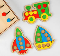 Komplektā trīs figūras: vilciens, raķete un kuģis.