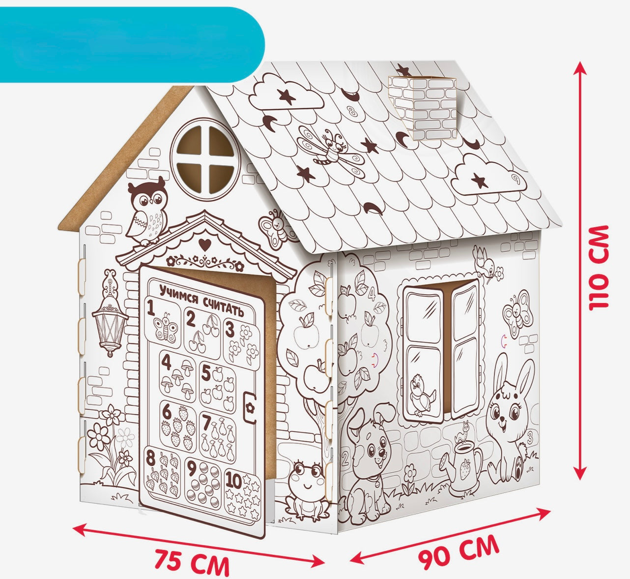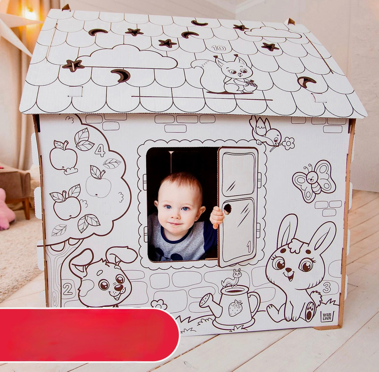 Māja kļūs par bērna iecienītu vietu rotaļām. Iekšpusē mazulis iekārtos sev mājīgu stūrīti, bet ārpusē izkrāsos sienas pēc sava dizaina.