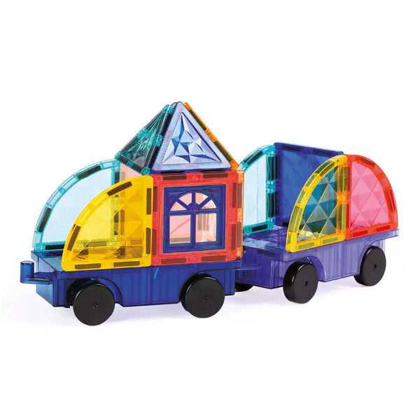 Komplektā: 61 magnēts un 2 transportlīdzekļu pamatnes ar riteņiem.