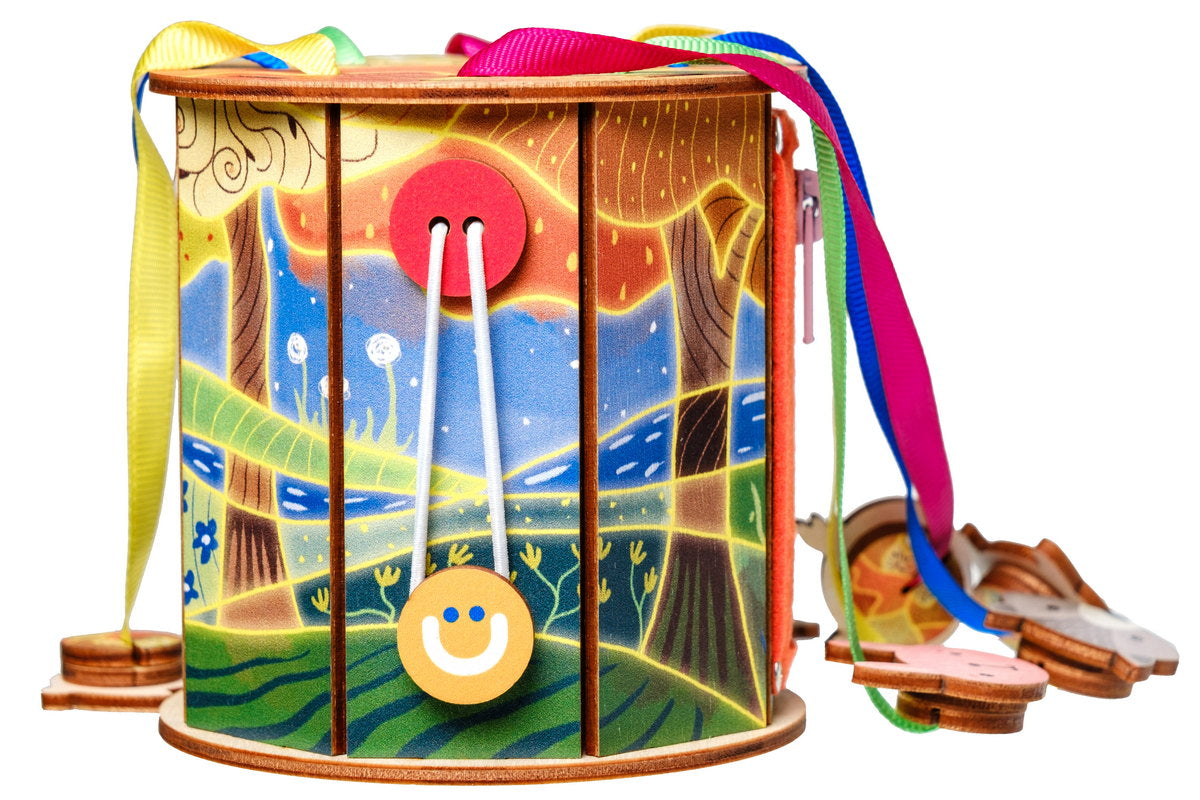Rotaļlieta attīsta sensorās maņas, sīko motoriku, uzmanību, acu-roku koordināciju.