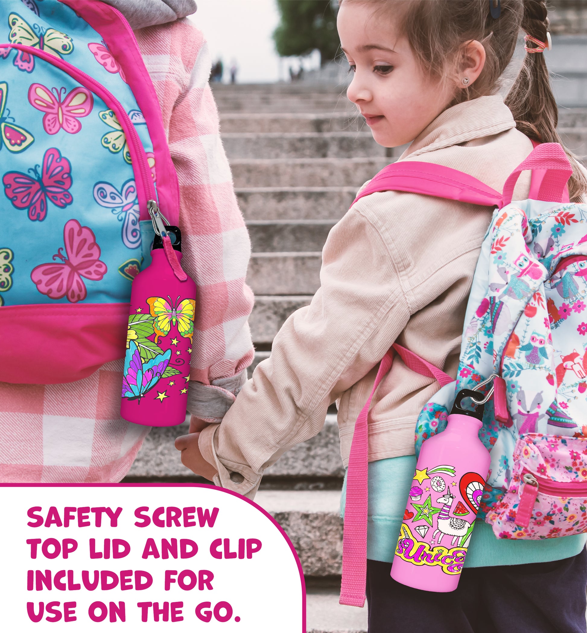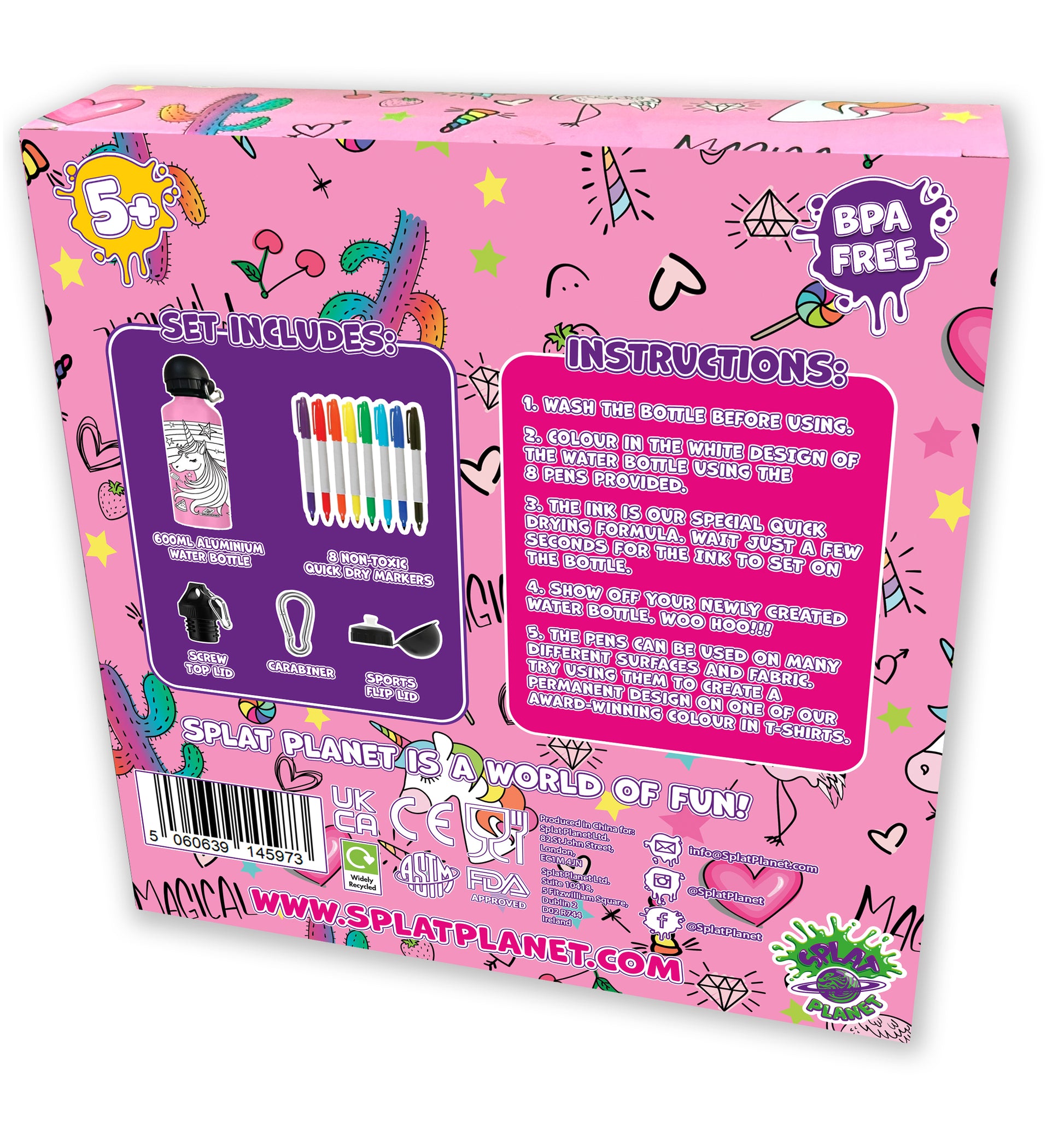 Izmantojiet komplektā iekļautos flomāsterus, lai izkrāsotu pudeli un izveidotu savu unikālo dizainu.