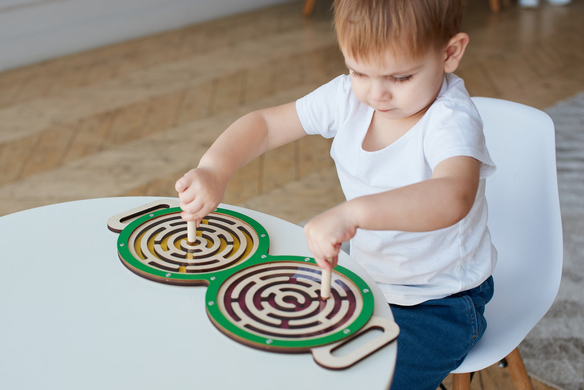 Komplektā: balansieris-labirints, divas magnētiskās nūjiņas.