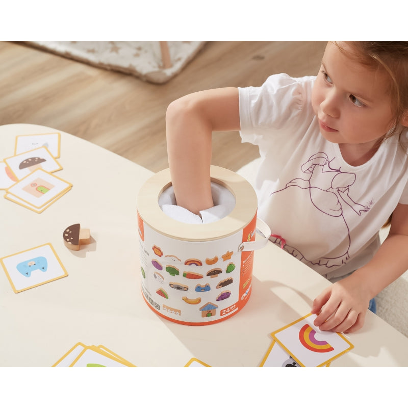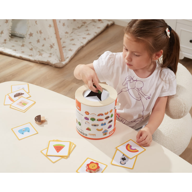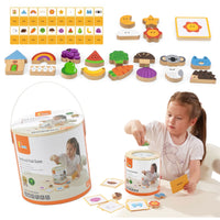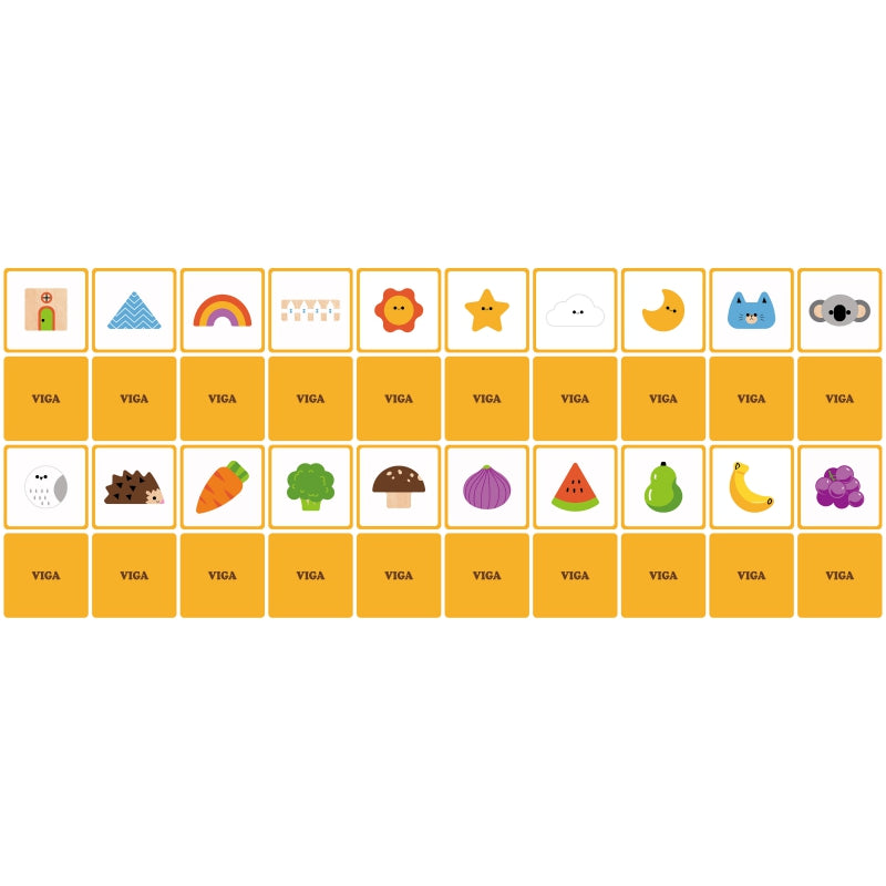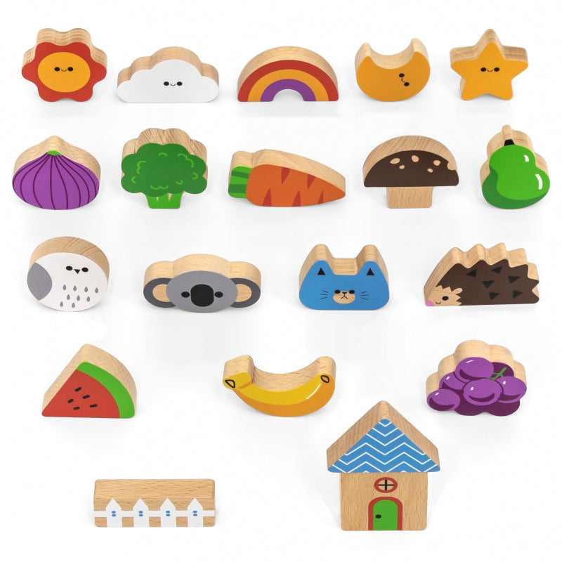 Komplektā: 20 koka figūras, 20 kartiņas.