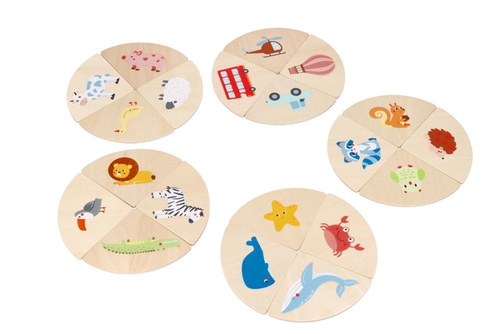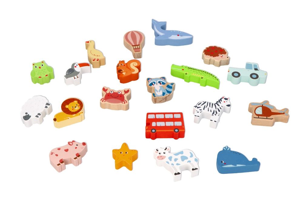 Komplektā: 20 figūras, 20 puzles, kokvilnas maisiņš.