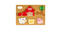 Komplektā: 1 korķa dēlis, 1 āmuriņš, 86 koka figūras, 80 nagliņas.