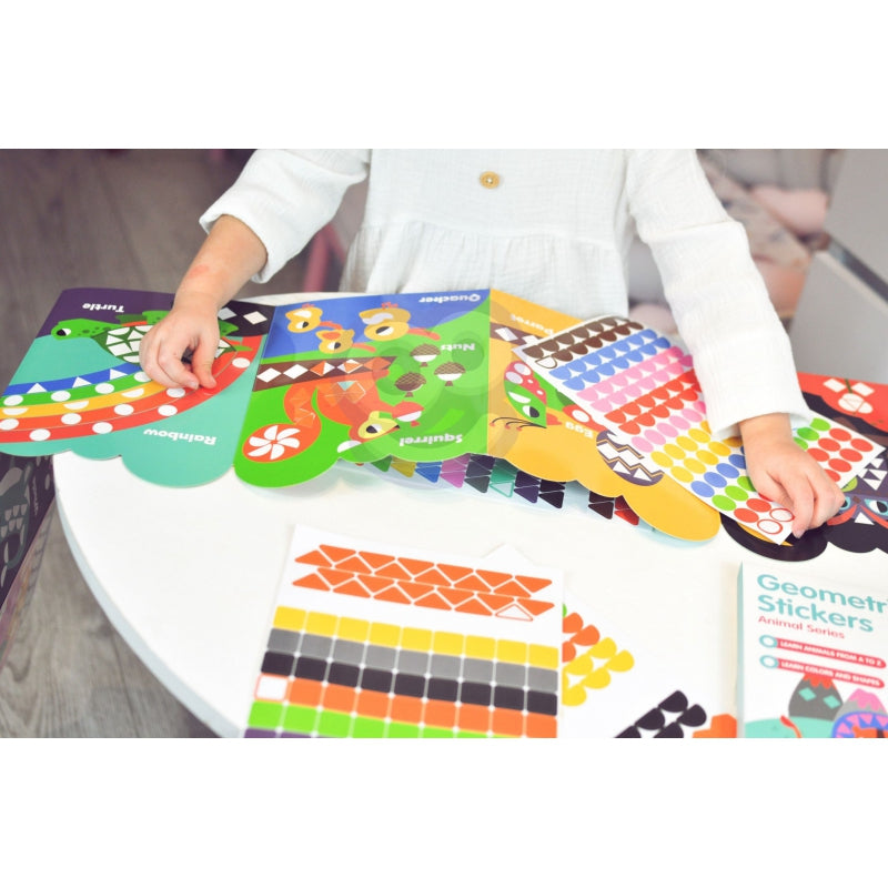 Komplektā ir 503 dažādu krāsu un formu uzlīmes un divpusējs plakāts ar 12 attēliem.