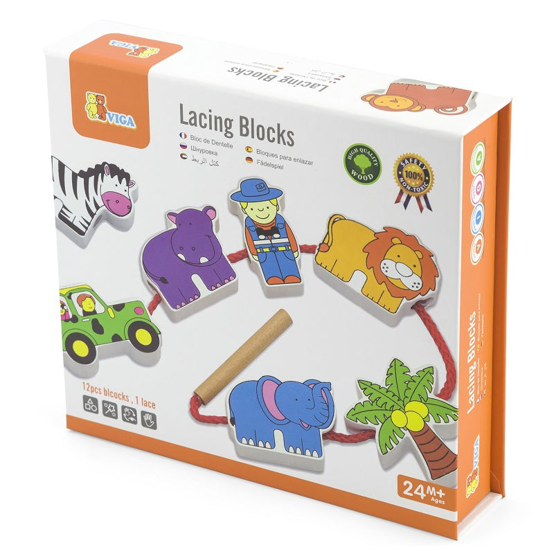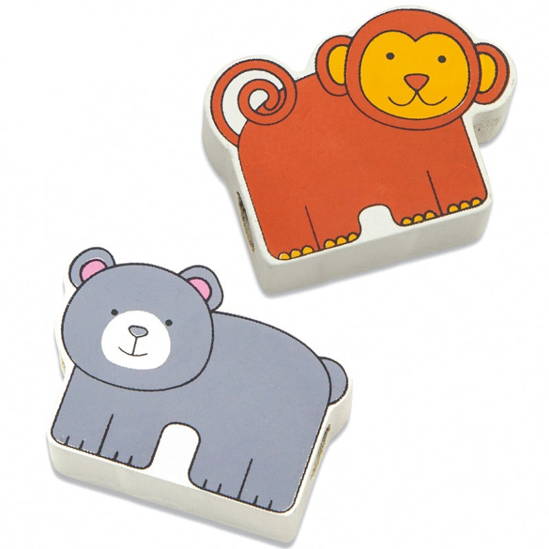 Komplektā ir 12 krāsainas koka figūriņas.