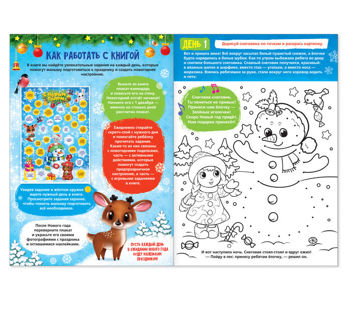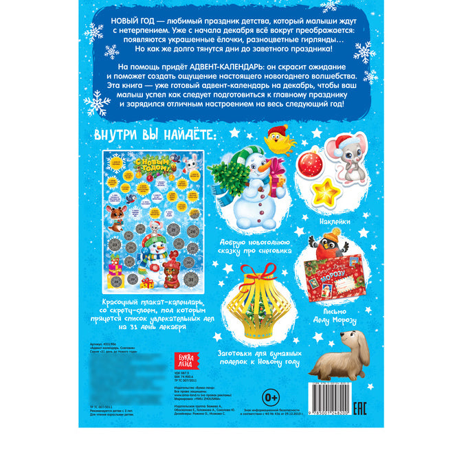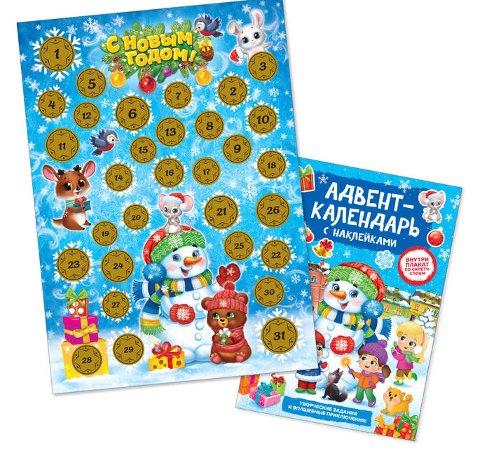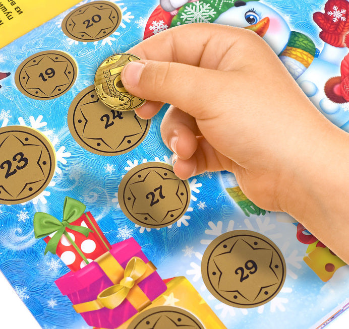 Adventes kalendārs ar scratch slāni un uzlīmēm (Sniegavīrs)