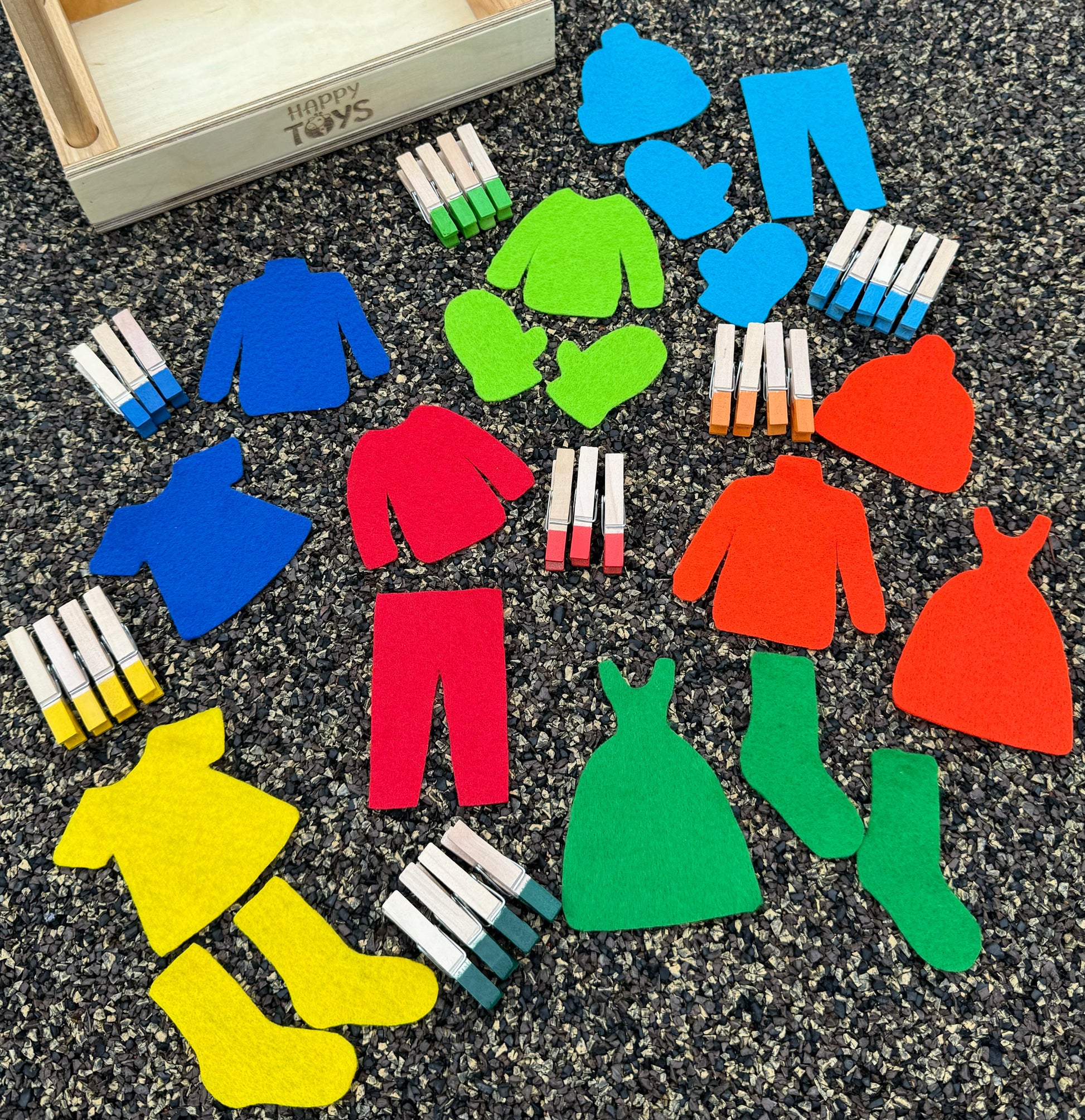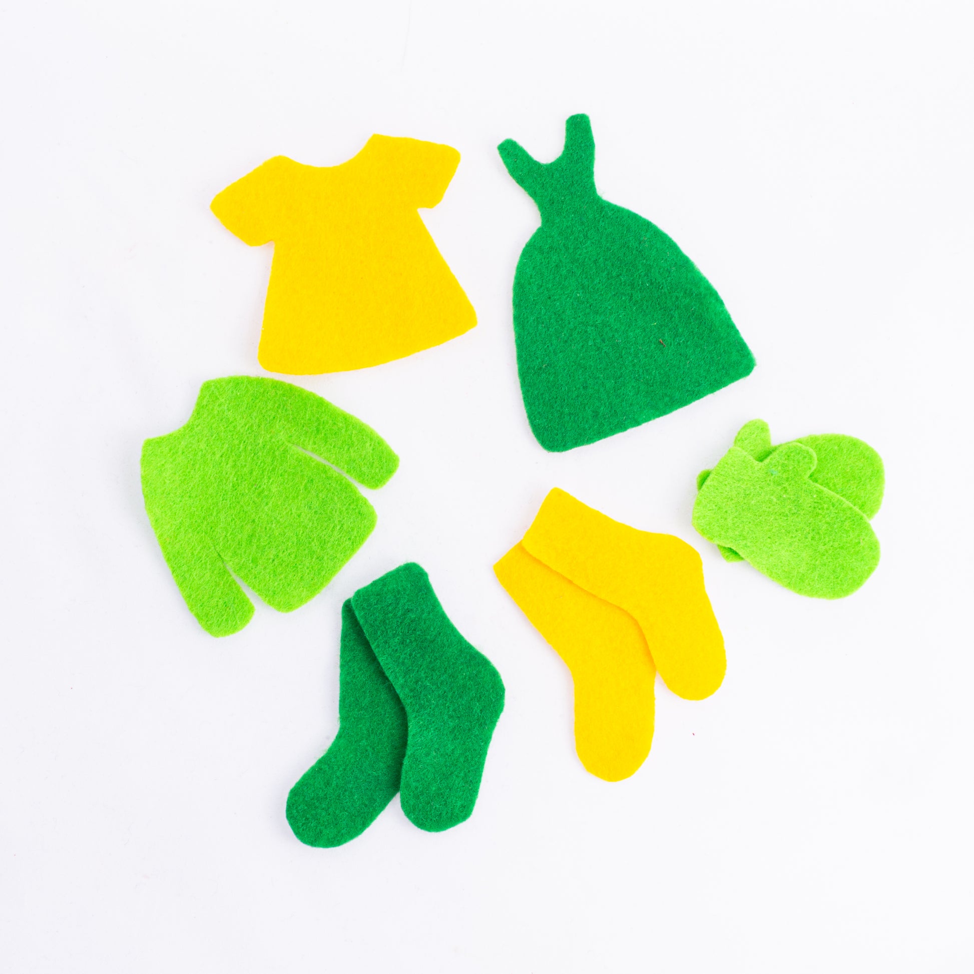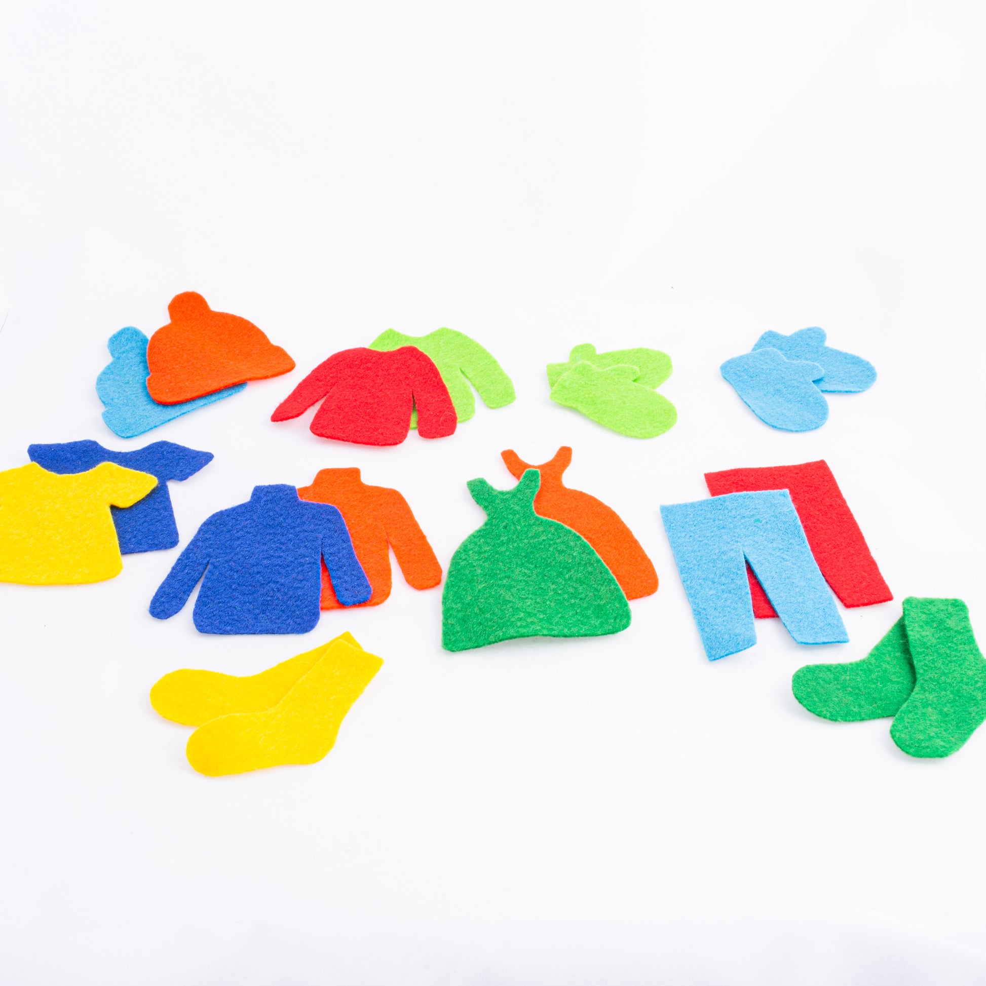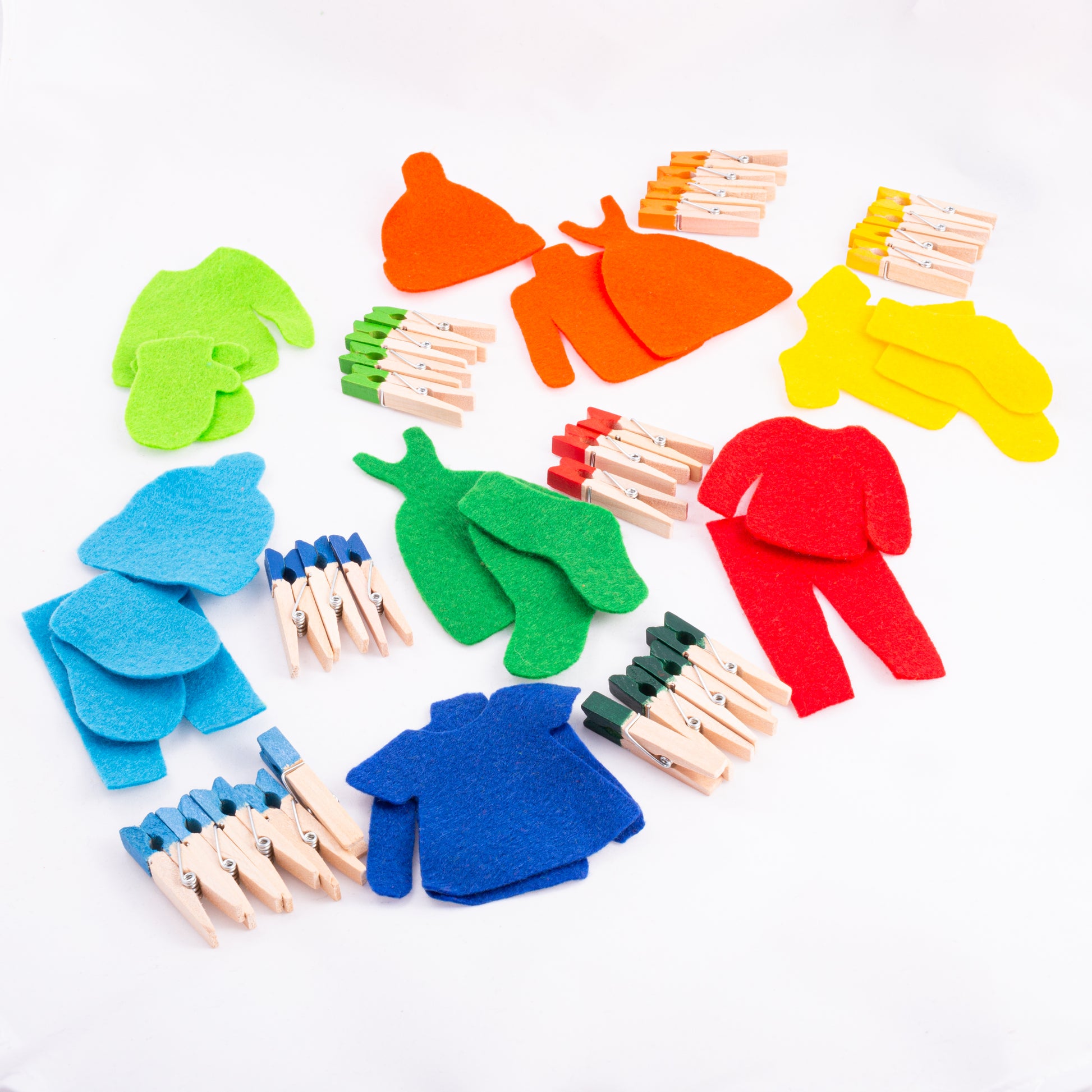 Komplektā: 27 koka knaģīši, 20 filca apģērba gabali.