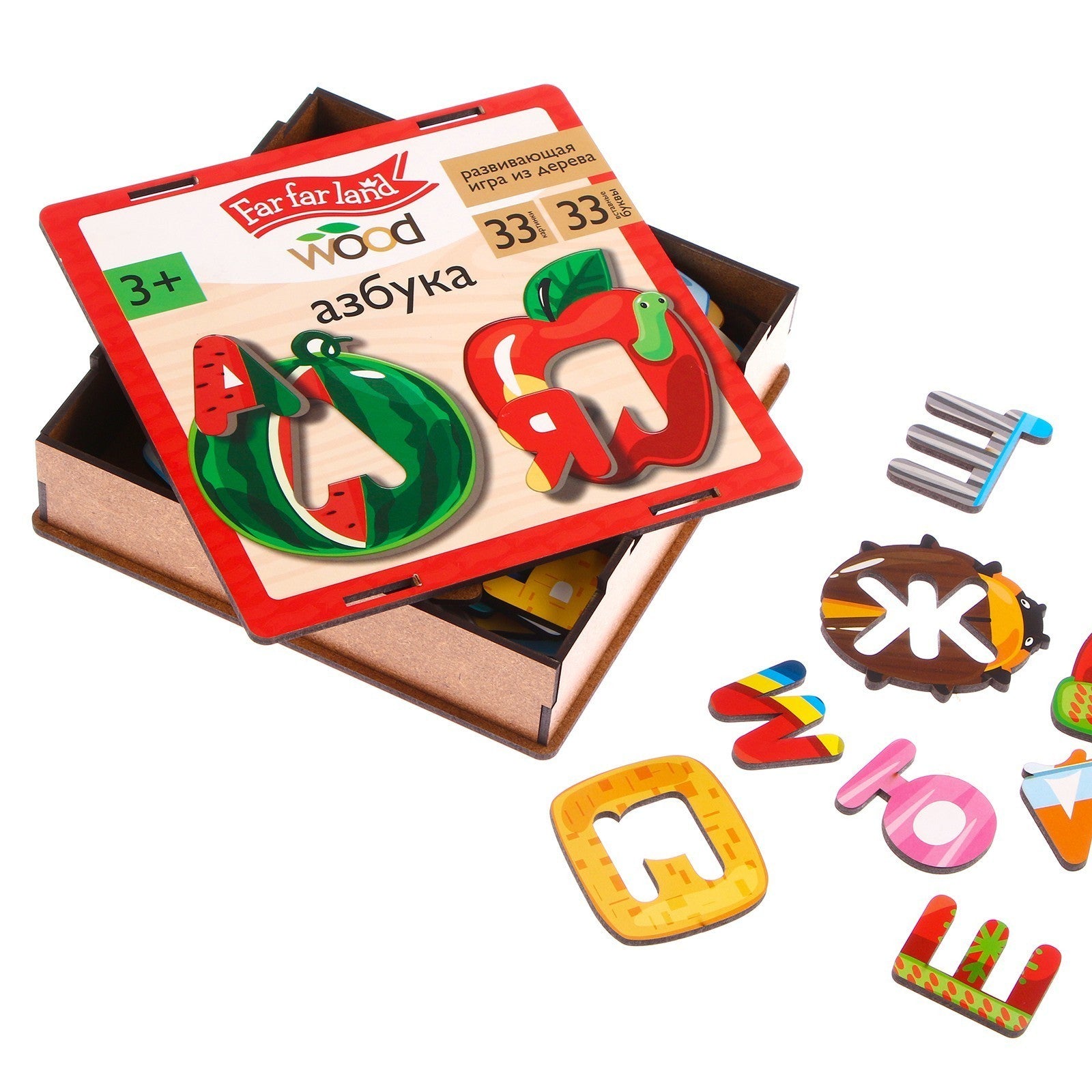 Komplektā: 33 burti, 33 attēli.