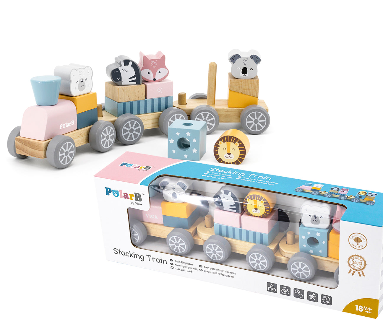 3 vagoni un 15 dažādu formu un krāsu figūras. Pasažieri-dzīvnieciņi no dažādiem kontinentiem.